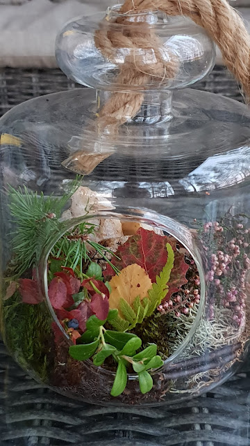 | Lasten tekemä syysasetelma. |