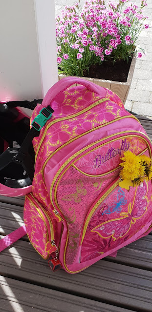 Eilen oli tytön viimeinen kerhopäivä. Olivat käyneet syömässä eväitä puistossa ja tyttö oli poiminut sieltä mukaansa nipun voikukkia. (Että niitä muuten riittää tänä keväänä!)