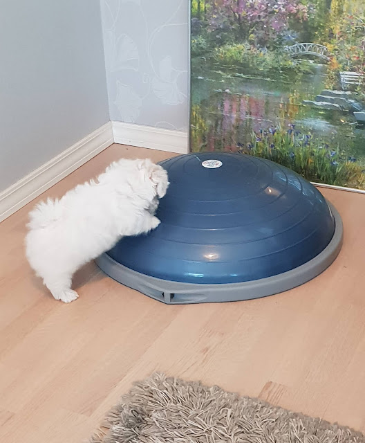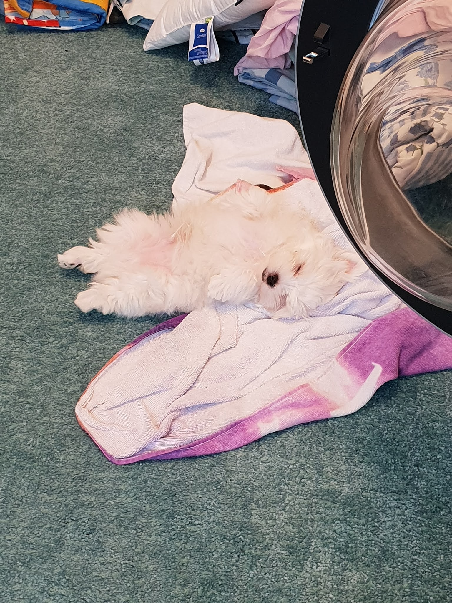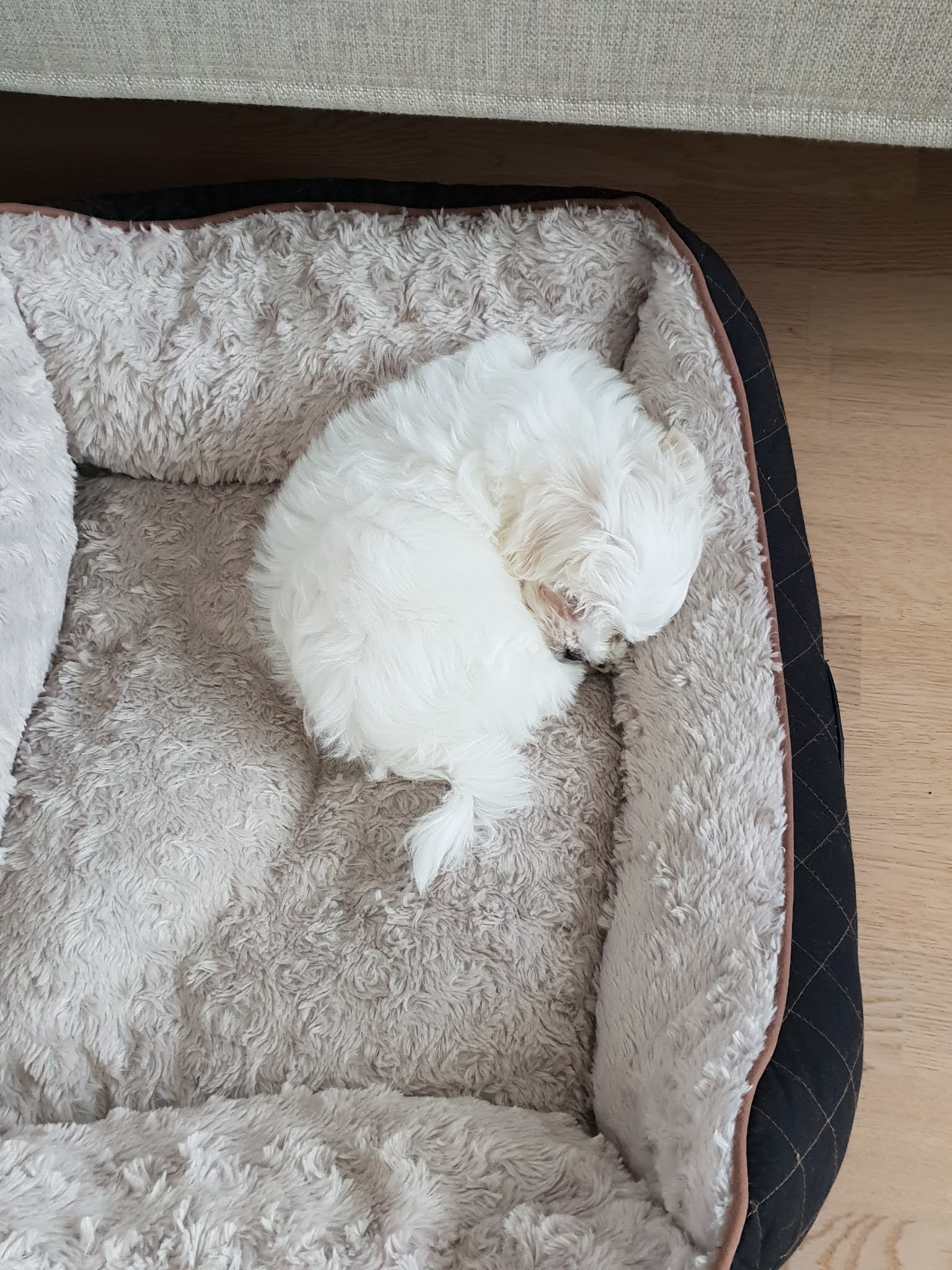 Tässä hän nyt on. Meidän pieni, suloinen, kahdeksanviikkoinen Maltankoirapoika