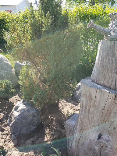 Tuijat osaavat tehdä korjausliikkeitä ja kasvattaa lisäkasvustoa niin, että saattavat tulla ihan uudenveroisiksi, vaikka luulisi, että peli on niiden osalta menetetty. Mieheni arveli, että kataja toipuu samaan malliin myös ja siirsi sen puolivarjoon. Kolme viikkoa sitten, tämä parantumaan lähtenyt kataja siirrettiin istutuspenkkiin saunan viereen.