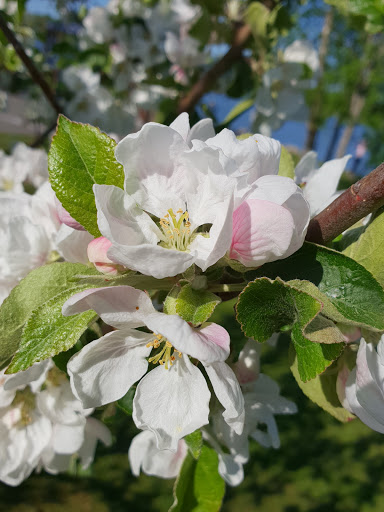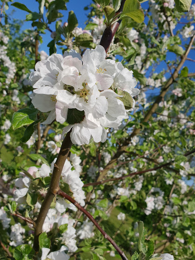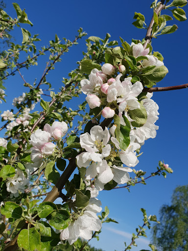 Toukokuun lopulla piha on mielestäni melkein kauneimmillaan. Runollisen lumoavan tunnelman saavat aikaiseksi lähes samaan aikaan kukkivat Omenapuut ja Koristekirsikat, raja-aitana toimiva Isotuomipihlaja, Syreenit, Norjanangervot ja pihan ulkopuolella seisova Tuomi. Ihania tuoksuja tulee joka suunnalta eikä rikkaruohoarmeija ole vielä päässyt kunnolla taisteluasemiinsa.