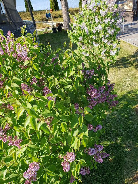 Olen rakastanut Syreenejä pienestä saakka ja nyt istutettiin niistä aidanne. Jos ne eivät viihdy uudella paikallaan (siellä saattaa olla niille liian kosteaa), siirretään muutama yläpihalle ja loput saunan eteen rinteeseen.