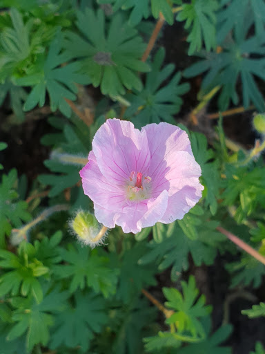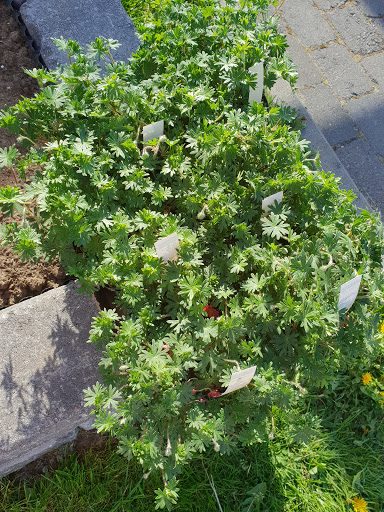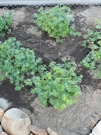 Meillä on alapihalla patio, jonka viereinen kaarre on ollut mietintämyssyssä kiveyksen laitosta saakka. Jotain kasvillisuutta siihen olen halunnut ja nyt päätin laittaa penkin toiseen päähän yllätysyllätys (!!!) Neidonkurjenpolvea (roosaa) ja toiseen Pikkutalviota (vaaleansinistä). Ne on erotettu kivillä toisistaan.
