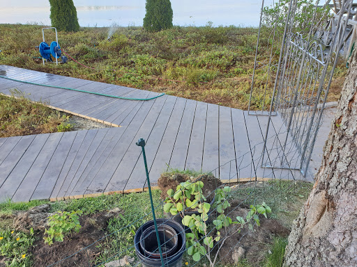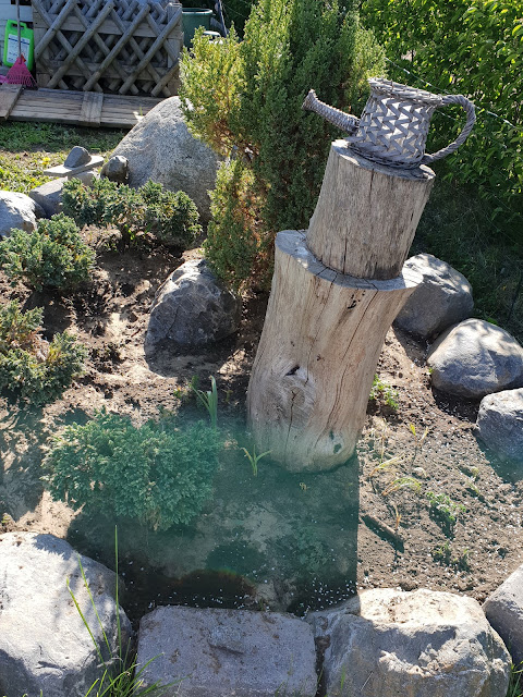 Alapihan projekti jatkuu. Kuntta on nyt saanut asettua pari viikkoa ja sitä on kasteltu hartaasti. Hyvältä näyttää ainakin tässä vaiheessa ja mustikankukkaakin pukkaa joka puolelta.