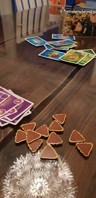 Näistä koko perheen ehdottomaksi suosikiksi nousi heti tuo korttipeli, jossa etsitään vastausta siihen, kuka pelin eläimistä on jättänyt jälkeensä läjän kakkaa. Kun kerää kolme kakkaemojia muistuttavaa pahvia itselleen, häviää pelin ja on surkea lemmikinhoitaja.