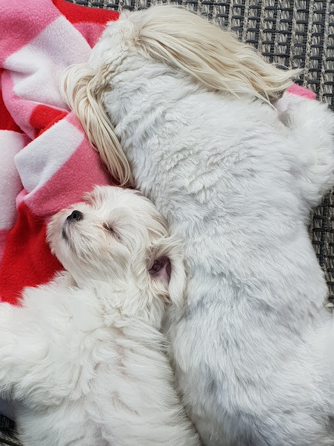 Olen julkaissut useita tekstejä meidän kahdesta Maltankoiramussukasta. Lucky on vuoden ja kolmen kuukauden ikäinen, Happy viisi kuukautta.