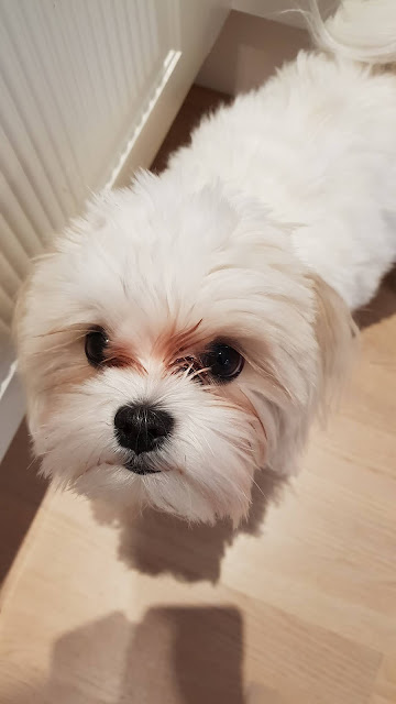 Saikkupäivänä meidän pikku potilas rakensi Lucky-koiralle oman kaupan Baby Bornin vaateshopista. Hyllyt täytettiin koiran leluilla ja luilla. Näyteikkuna sai koiramaiset somisteet ja itse karvapöksy asiakas nautti aamupalansa pikkuruisen sovituskopin edessä.