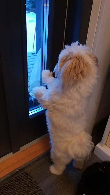 Tämä vekkari järjestää myös joka aamu maailman ihanimman herätyksen säntäämällä nuuskuttamaan korvantauksia ja sen jälkeen juoksemalla mitä suurimmalla riemulla takapihalle aamu-ulkoilulleen. Ja se riemu sekä elämänilo. Se tarttuu väkisin myös ihmiseen.