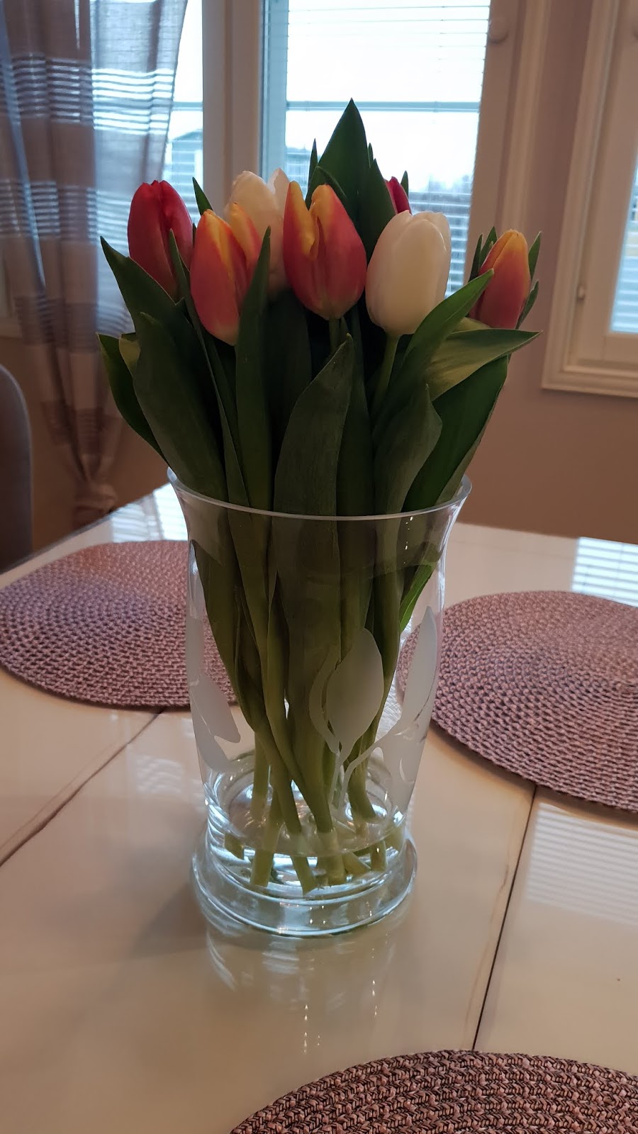Tulppaanikimppu pöydällä on siitä mulle ensi merkki ja muutaman päivän kuluttua sitä siirrytään jo helmikuuhun.