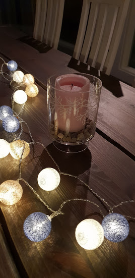 Valoa syksyyn tuovat myös toiset ihanuudet – tunnelmavalot ja kynttilä poikineen.