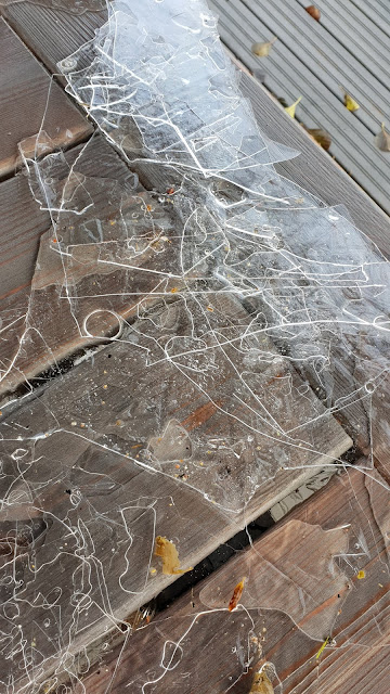 Lapsille oli eilen kiva yllätys pakkasyön jäljiltä muodostunut ohuen ohut jääriite rannassa.
