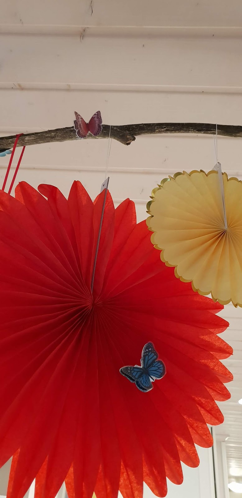 Mun luottopaikka tilata kaikenlaista juhlakampetta on Synttärikuningas. Siellä on mielestäni hyvä valikoima erilaisia teemoja ja tuotteita. Nämä roikkuvat viuhkamaiset koristeet on myös sieltä.