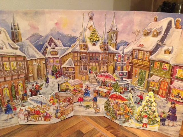 | Tässä kalenterissa oli kaikkea ihanaa. Glitteröity vanhanajan maisema ja kolmiulotteinen toteutus. |
