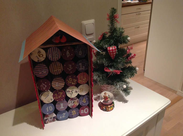 | Tämä kalenteri tehtiin esikoisen kanssa lehtikuvan innoittamana muutama vuosi sitten. Välillä se on vieläkin käytössä. |